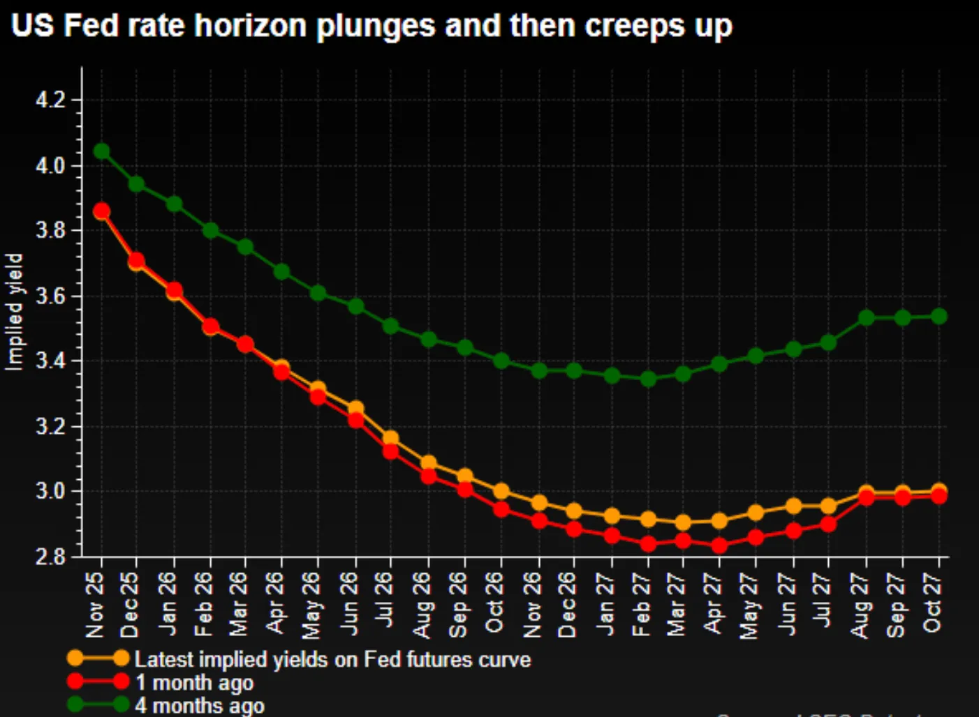 The Federal Reserve’s renewed easing cycle has been central to this shift. Following a similar move in September, markets expect another 25 basis-point rate cut later this month.