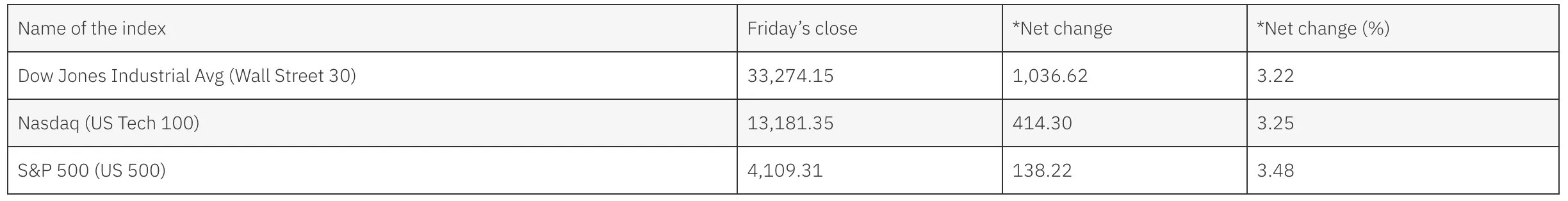The US stock market surged for a third consecutive week as all 3 major indices — the S&P 500, Nasdaq, and Dow Jones — registered over 3% gains each.