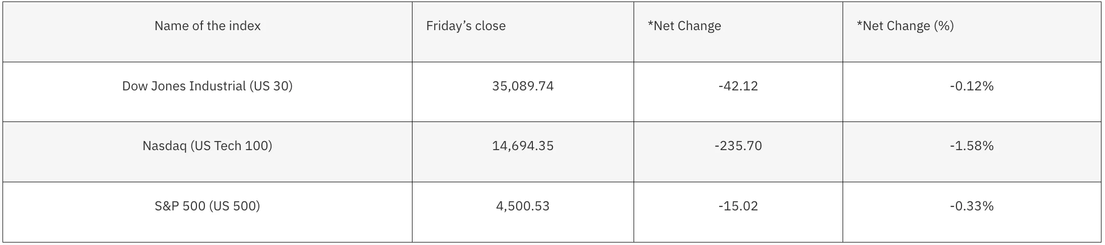 *Net change and net change % are based on the weekly closing price change from Monday to Friday.