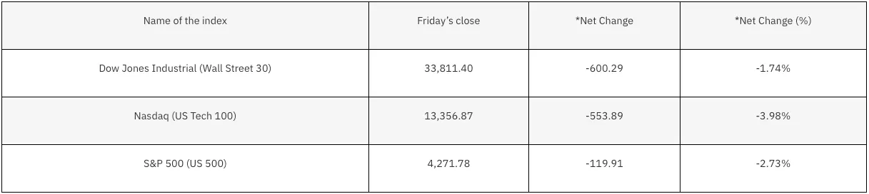 *Net change and net change % are based on the weekly closing price change from Monday to Friday.