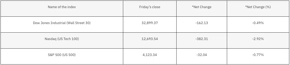 *Net change and net change % are based on the weekly closing price change from Monday to Friday.